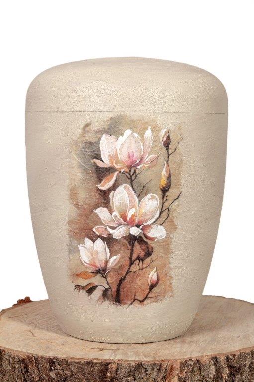handbemalte Natur-Urne "Magnolie" in sand